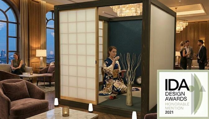 New Luxury & Wabi-Sabi at the Zen Tea house, with the tatami mat.